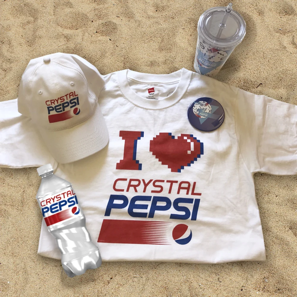 Available on CafePress.com beginning August 14th, fans of the clear cola will be able to customize their own Crystal Pepsi themed apparel and accessories. CafePress will be celebrating this relaunch with promotional giveaways and a limited release of Crystal Pepsi apparel.